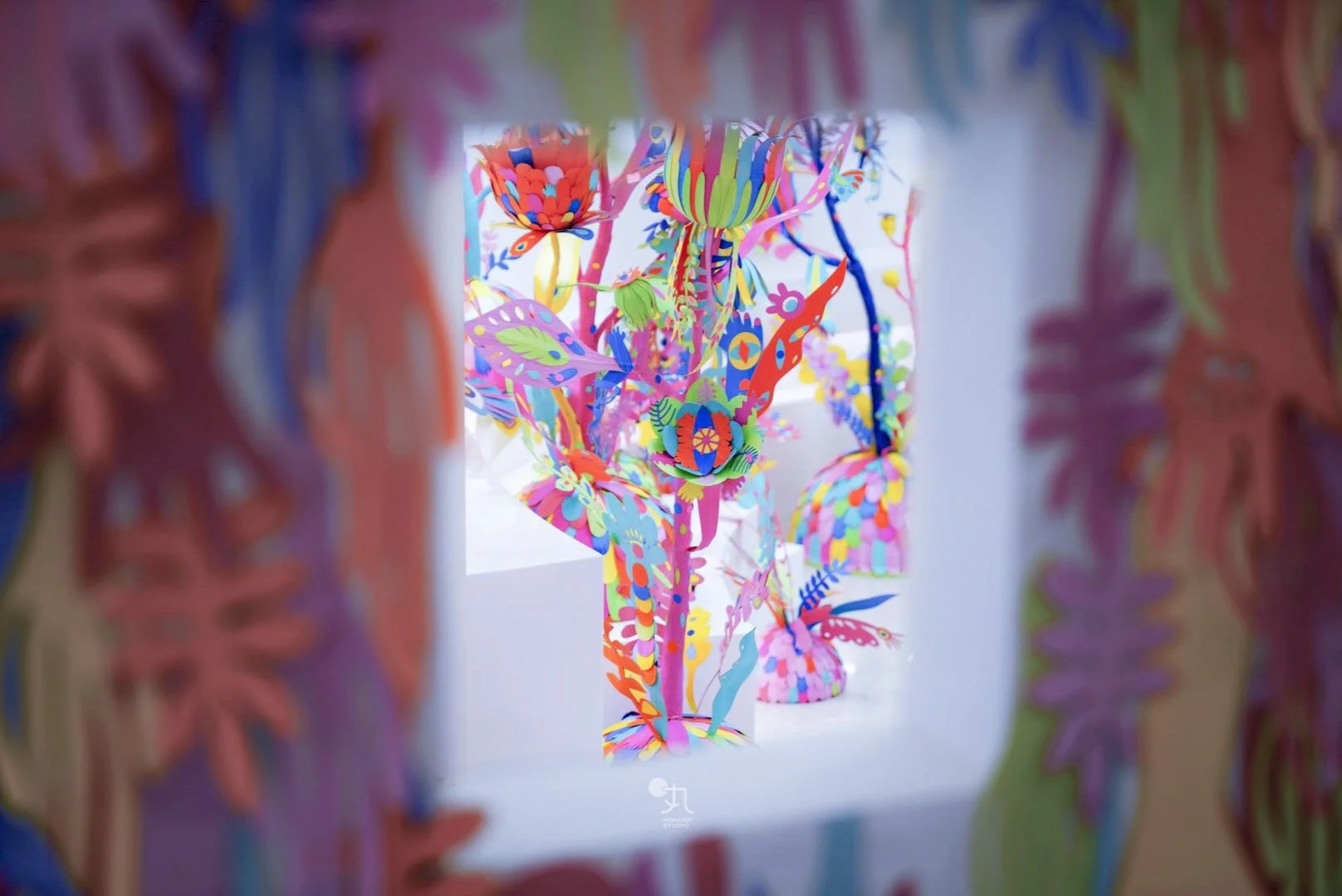 纸张正如同自然生长的作物,在蔓延发散的线条中,留有斑驳摇曳的空白。它们使原本的空间更多几分生趣和不确定性,只不过纸艺是加入了人文温度的自然作物,其身上的痕迹脱胎于想象力。