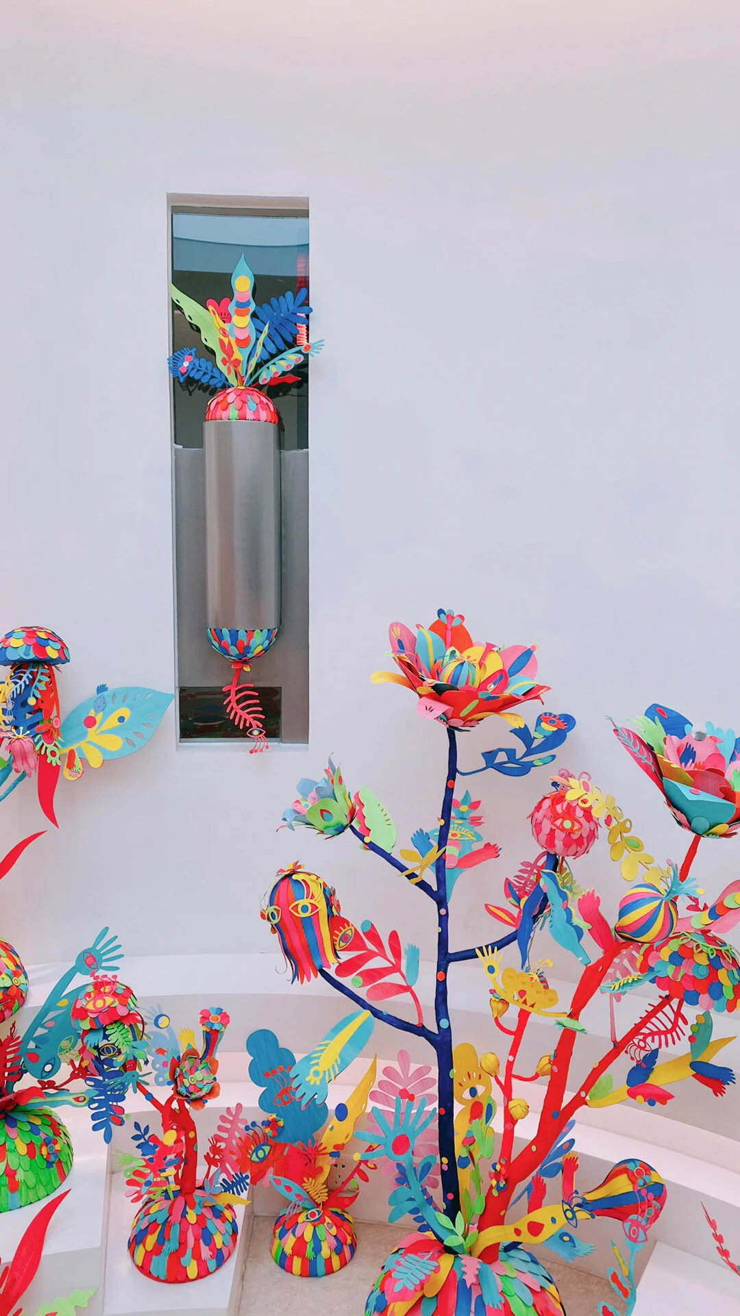 Paper is endowed with unique vitality and characteristic advantages in the expression of this exotic forest. They absorb thousand of colors, embrace conceptual forms born out of imagination, and a myriad of materials. A sense of cyclical symmetry from nature is thus hidden.