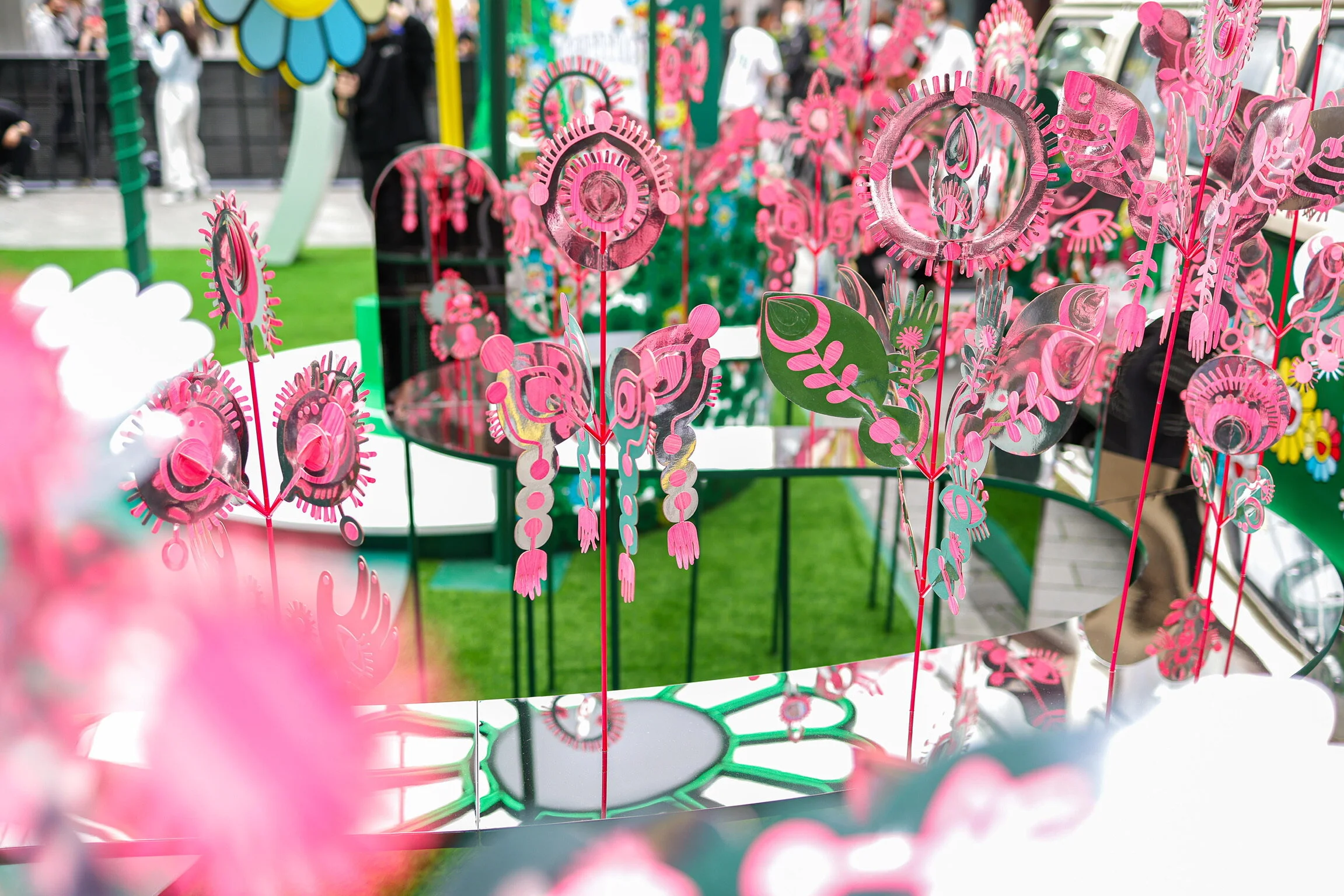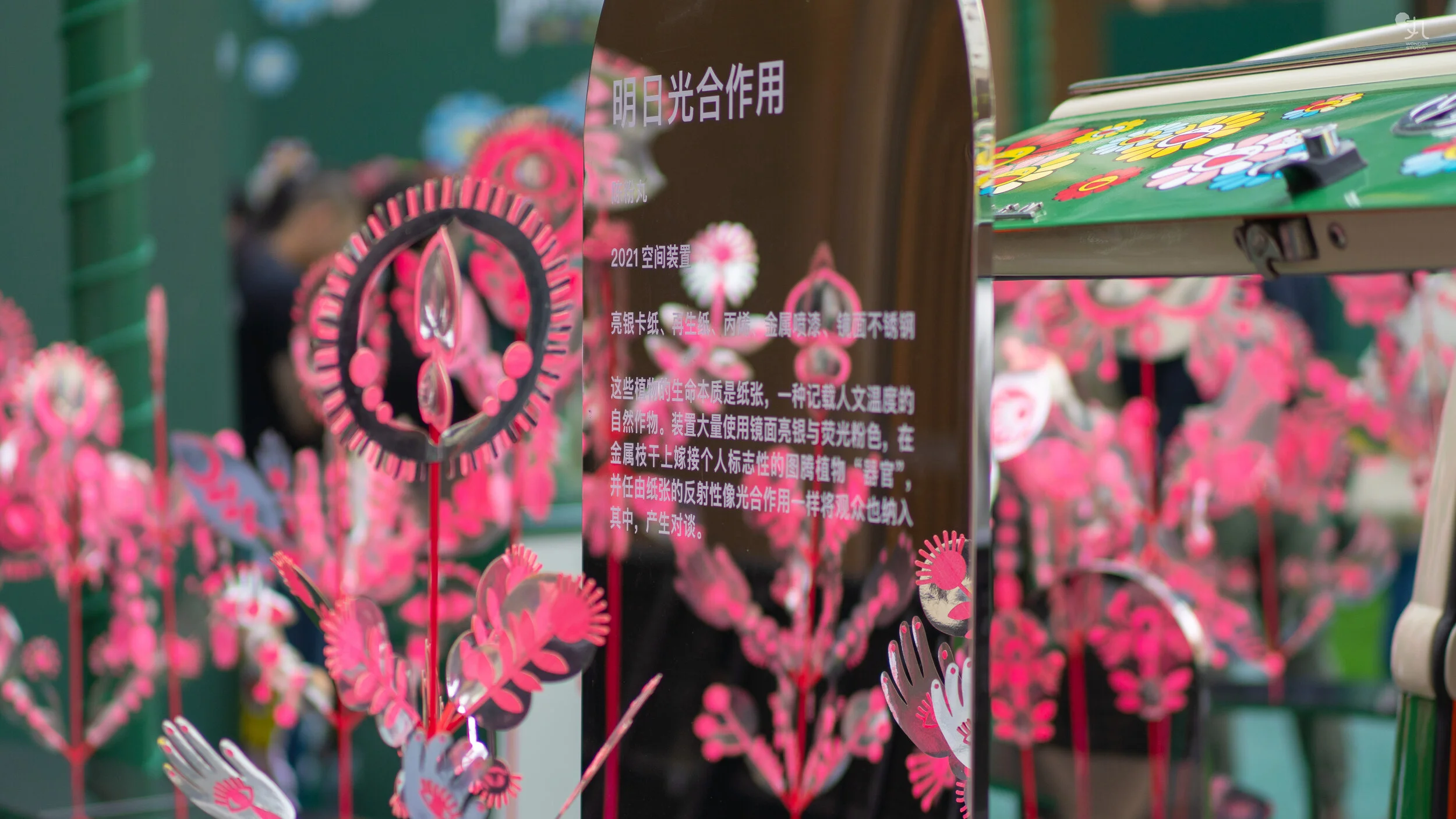 The essence of life for these plants is paper, a kind of natural crop that records human temperatures. The work uses a large amount of mirror silver and fluorescent pink, grafting the iconic totem plant "organs" of Fenwan on the metal branches, and allowing the reflection of the paper to bring the audience into the conversation like photosynthesis.