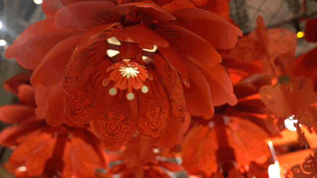 The installation contains a total of 30 flowers, among which 880 petals are decorated and carved with papercut by the Fenwan’s team, containing the unique celebration of the Chinese New Year. The flower splits up layer upon layer, opens and closes slowly under the mechanical power, like the human breath. She hopes to enlarge the vital signs of flowers in artistic form, so that pedestrians can feel the vitality of spring when they pass by.