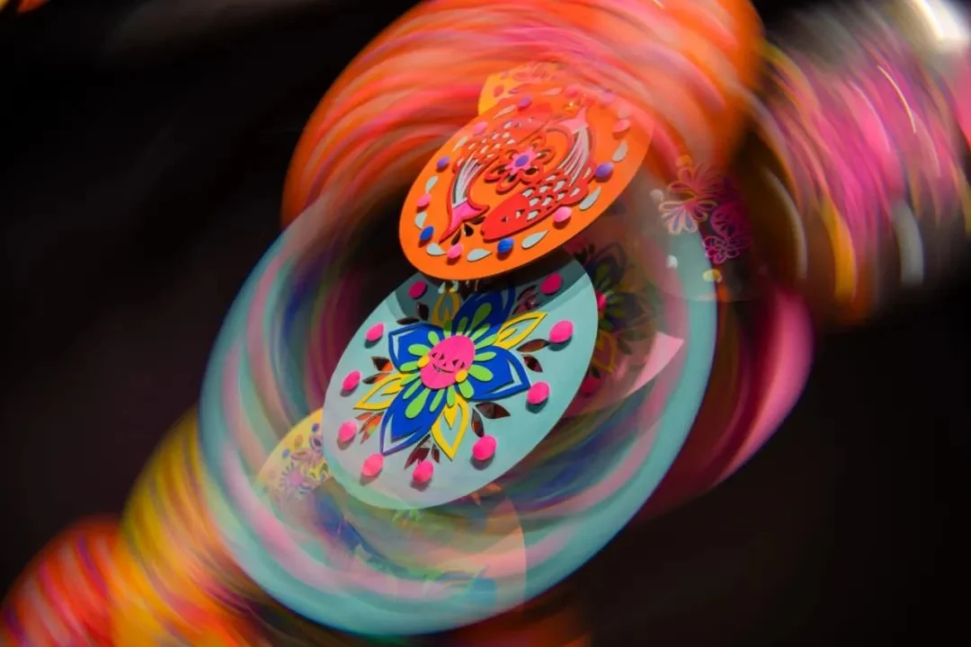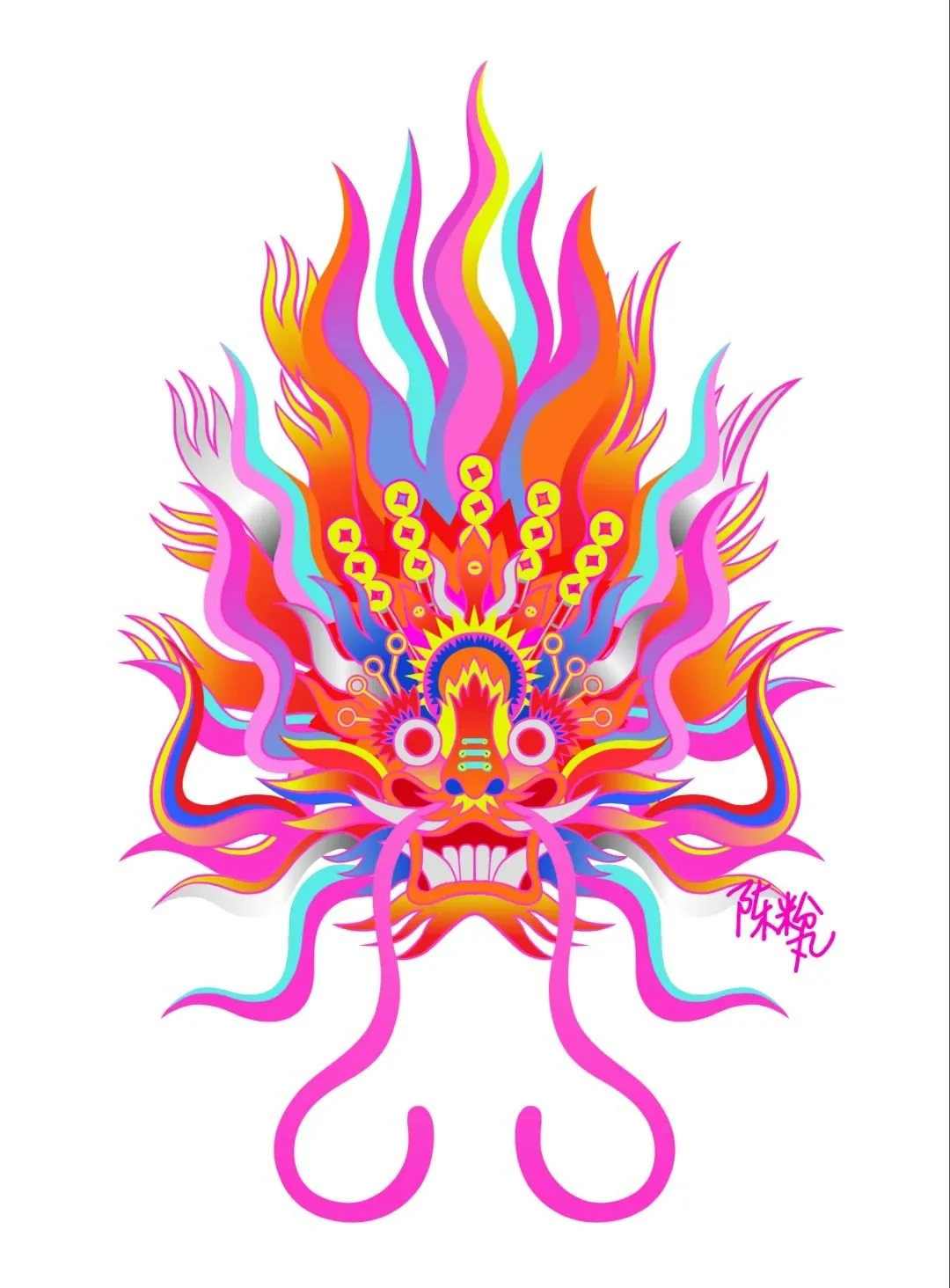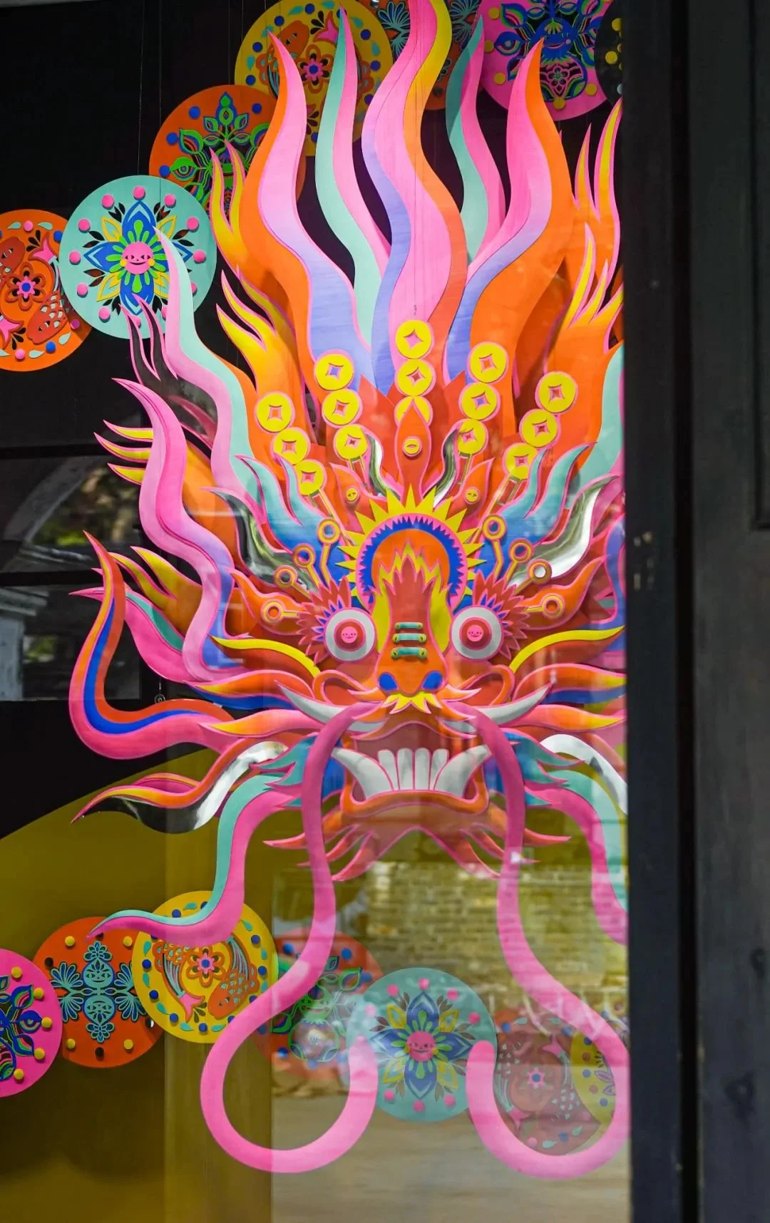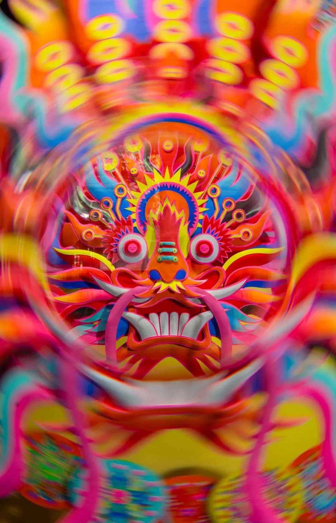 The dragon's head still draws inspiration from Infinite, now infused with more vibrant, high-saturation colors and circular motifs that echo the patterns of the piece, aligning with the festive spirit of the Lunar New Year. Through the layered suspension of dispersed components and paper-cutting techniques that create a relief-like effect, the work comes to life with striking vitality.