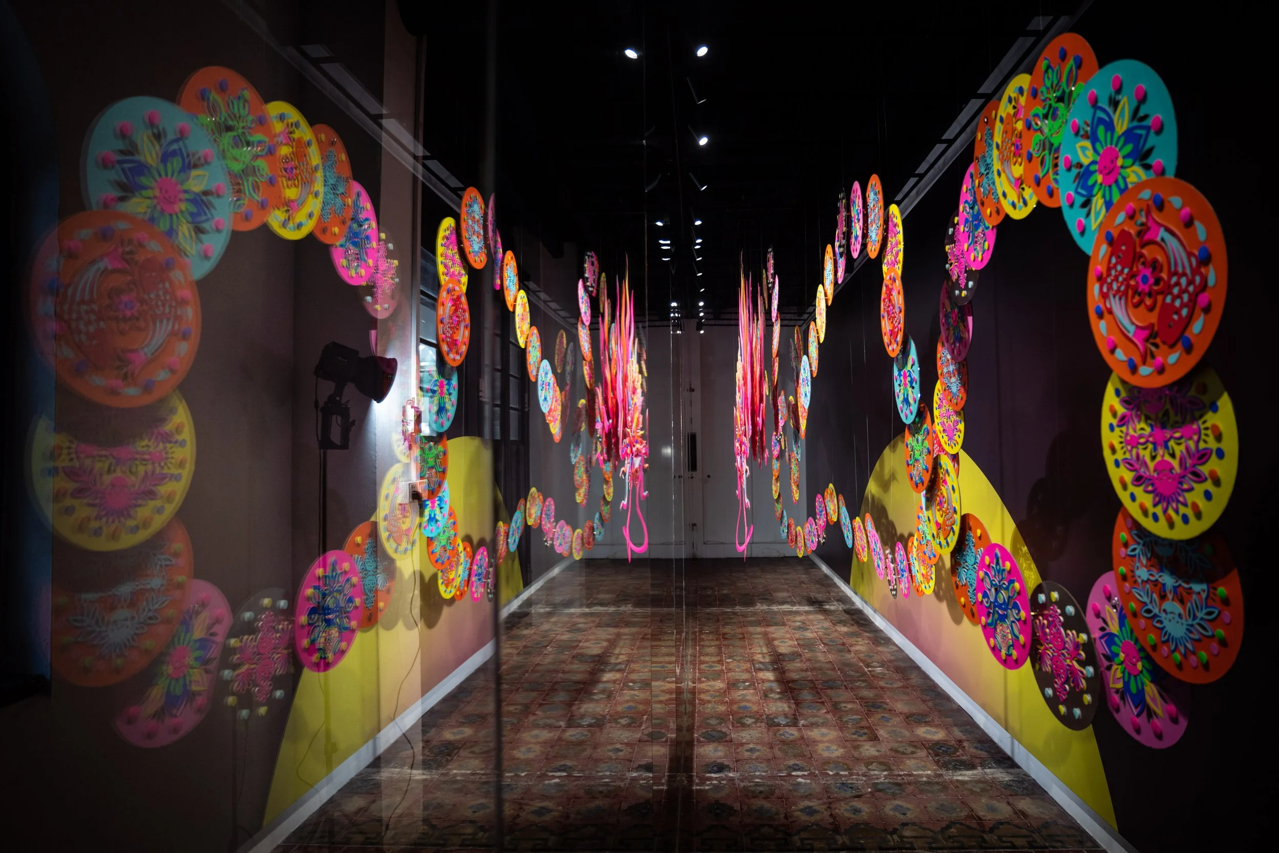 The English word "Loong," phonetically similar to the Chinese word for dragon (龙), inspires the title Loooooooooong. The name features ten "o"s, visually echoing the form of the work itself: a dragon's body composed of five sets of circular paper-cut patterns, each distinct in design and contrasting in color, weaving endlessly in a continuous loop.