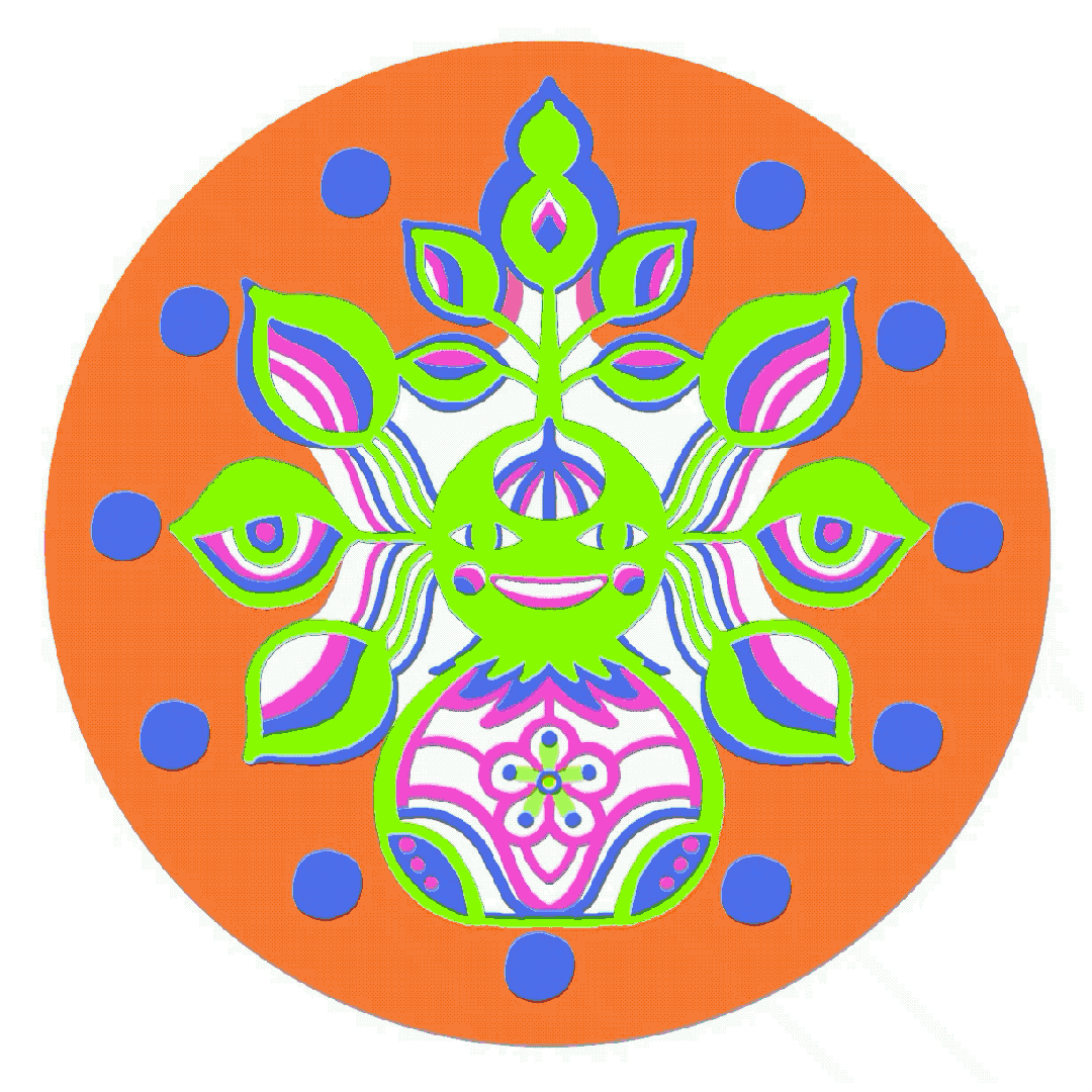 中国龙的英文“Loong“也与中文“龙”读音相似。而作品名Loooooooooong内则有10个o,整体字形与作品形态呼应:龙身由五组不同图案、相对配色的剪纸团纹构成,循环不断。