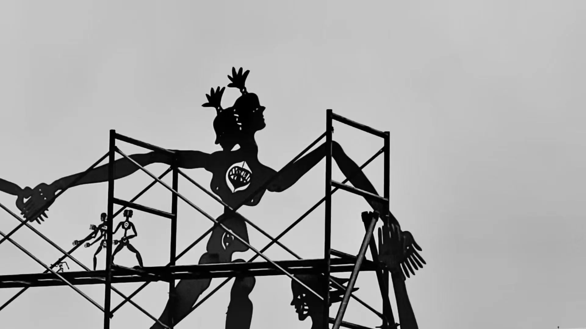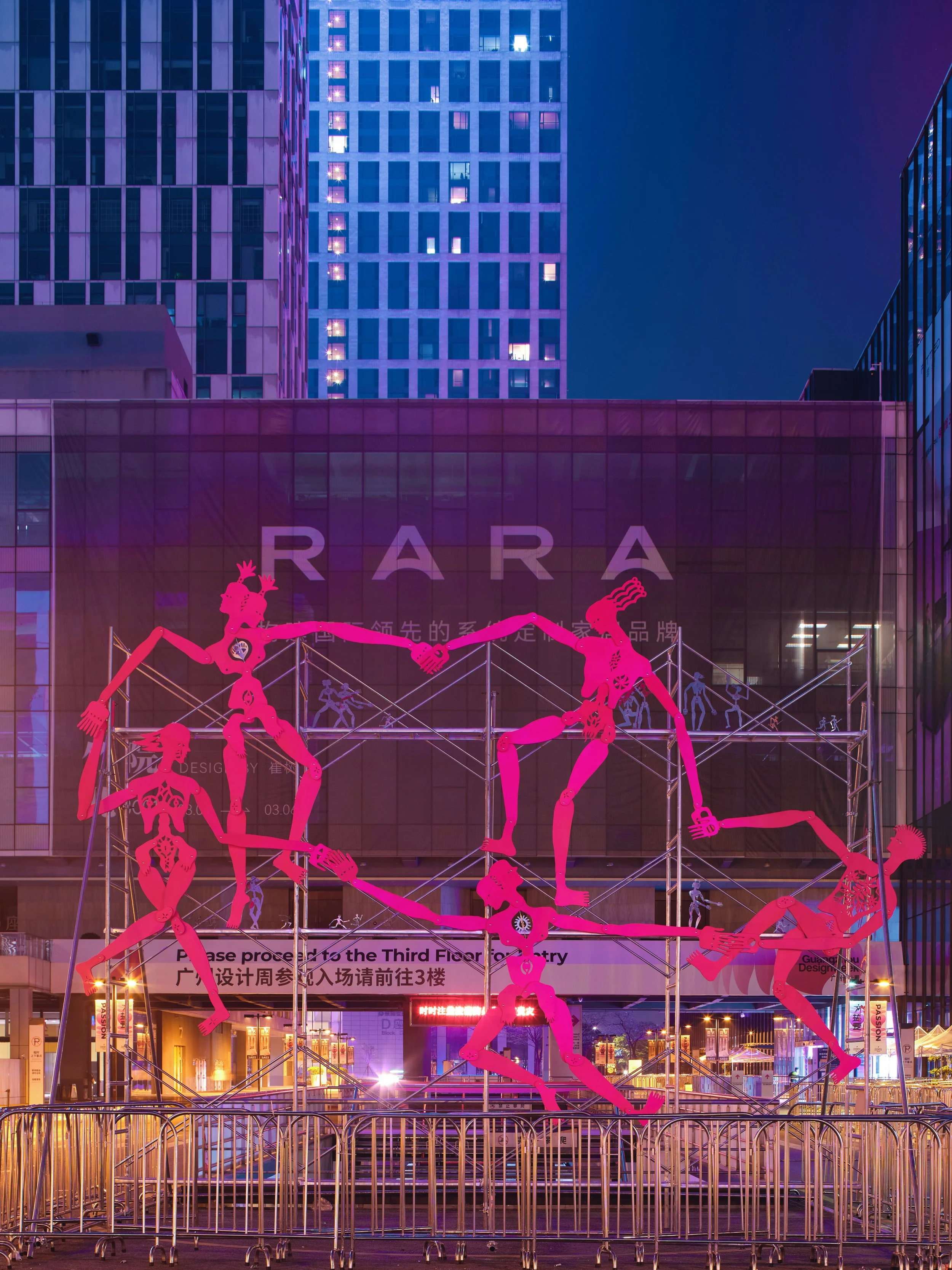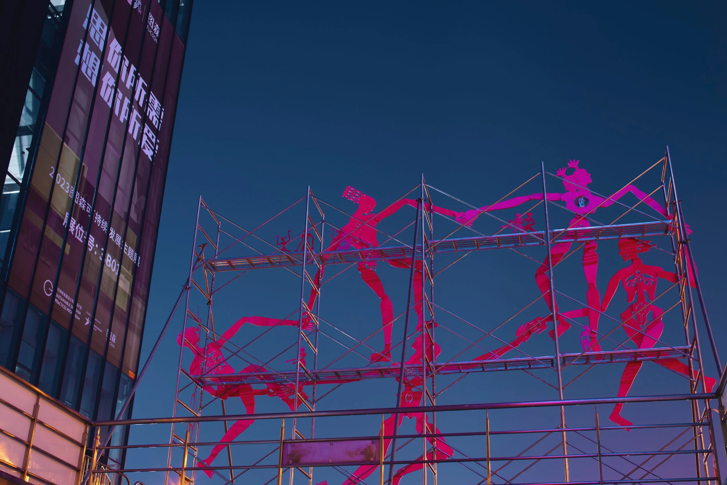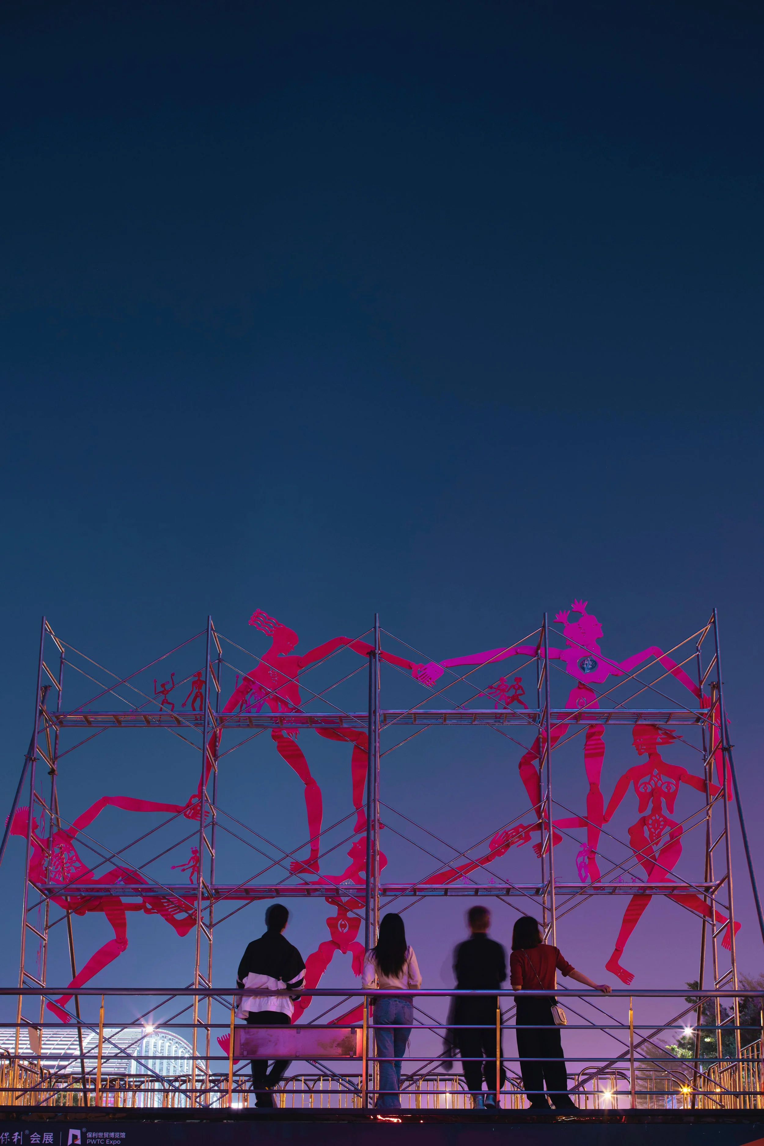 现场装置方案将大型灵魂人物与脚手架相结合,亦将脚手架这一常见施工用具从日常中抽离,巧妙地嫁接进作品。“现成的现成品”这一当代思考,化作了灵魂们起舞的背景。