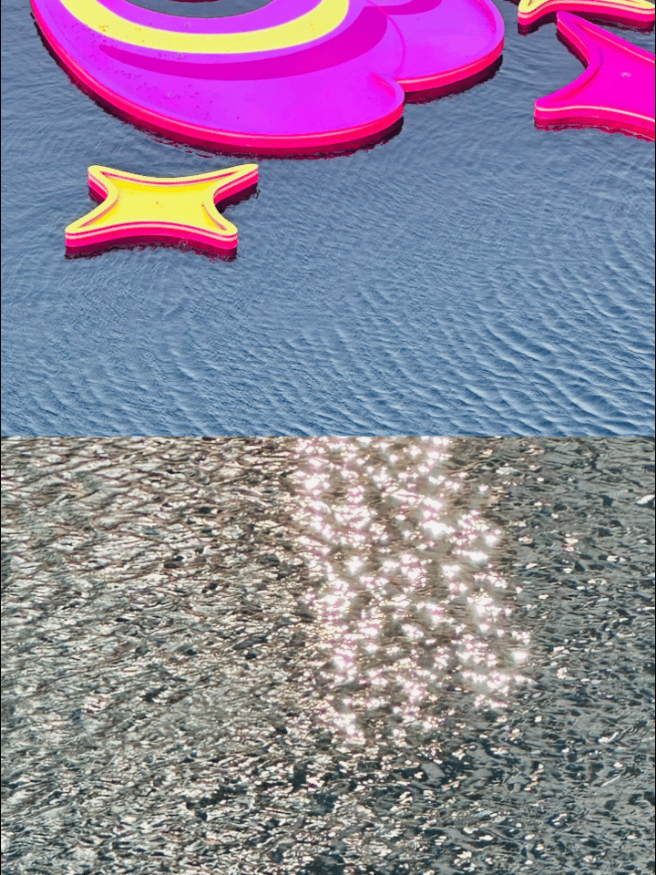 Swaying gently with the river’s surface, the paper patterns become metaphors for emotional exchange — the ever-shifting currents between people, within the self, and across time. Their reflection in the water blurs the boundary between the real and the imagined, just as love moves invisibly, yet undeniably.