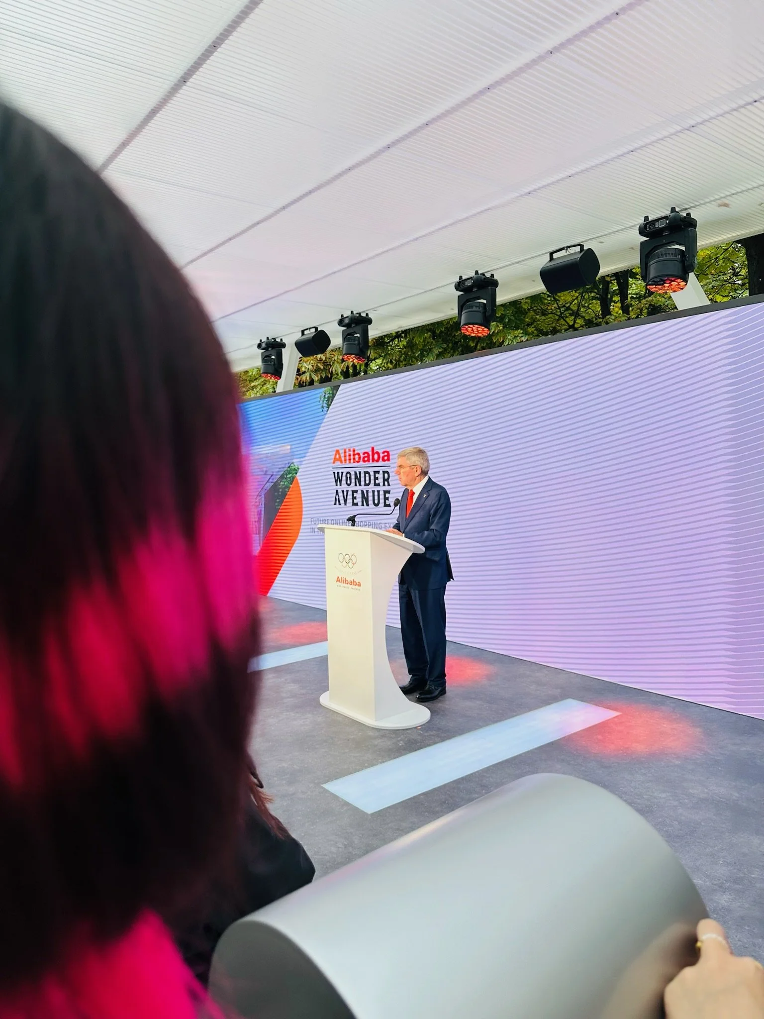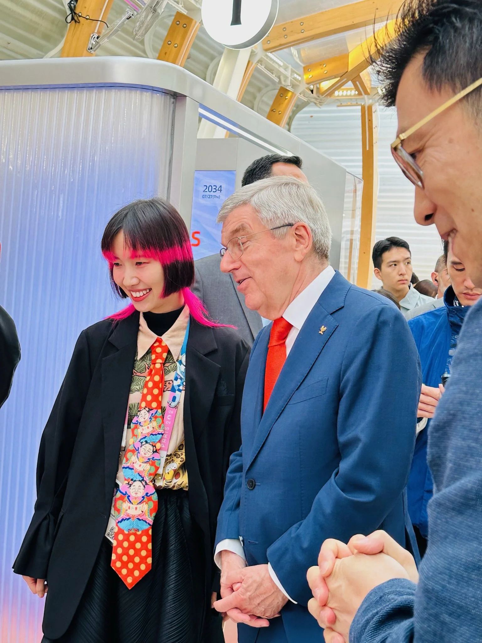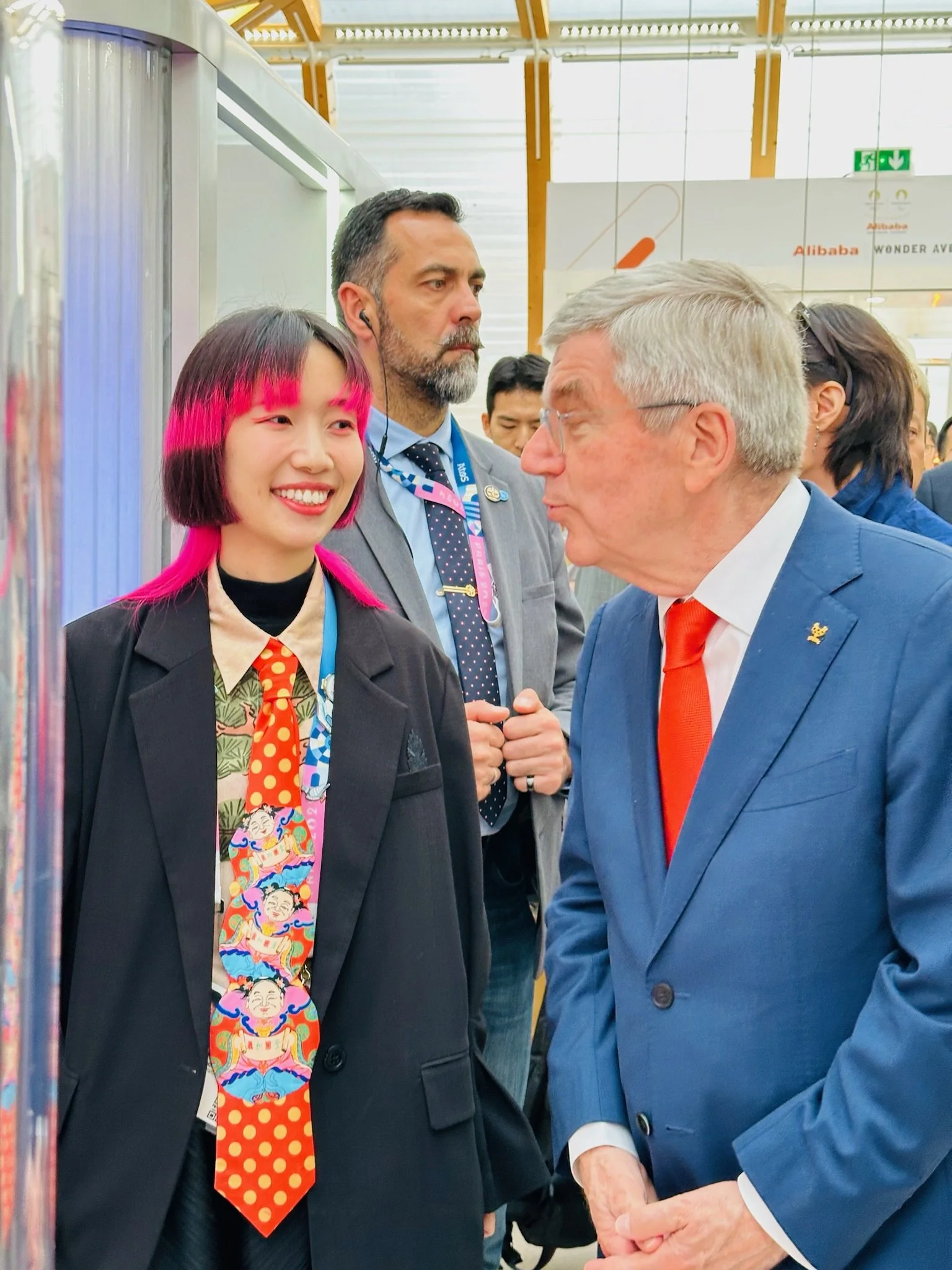 Thomas Bach, President of the International Olympic Committee, attended the Alibaba Wonder Avenue opening ceremony, where he and Chen exchanged views on Chinese paper-cutting art and her creative philosophy, creating a cross-disciplinary dialogue between art and sports.