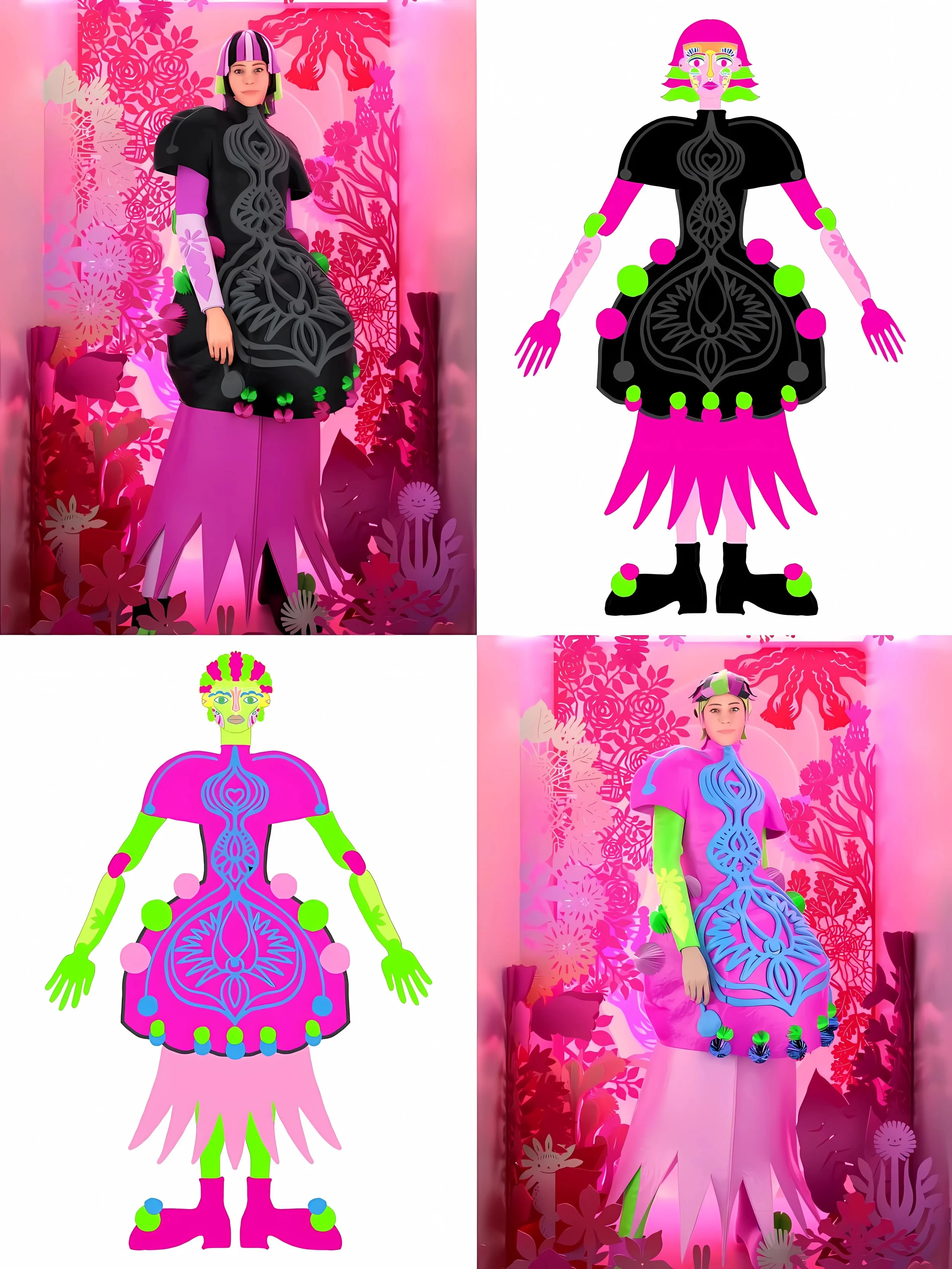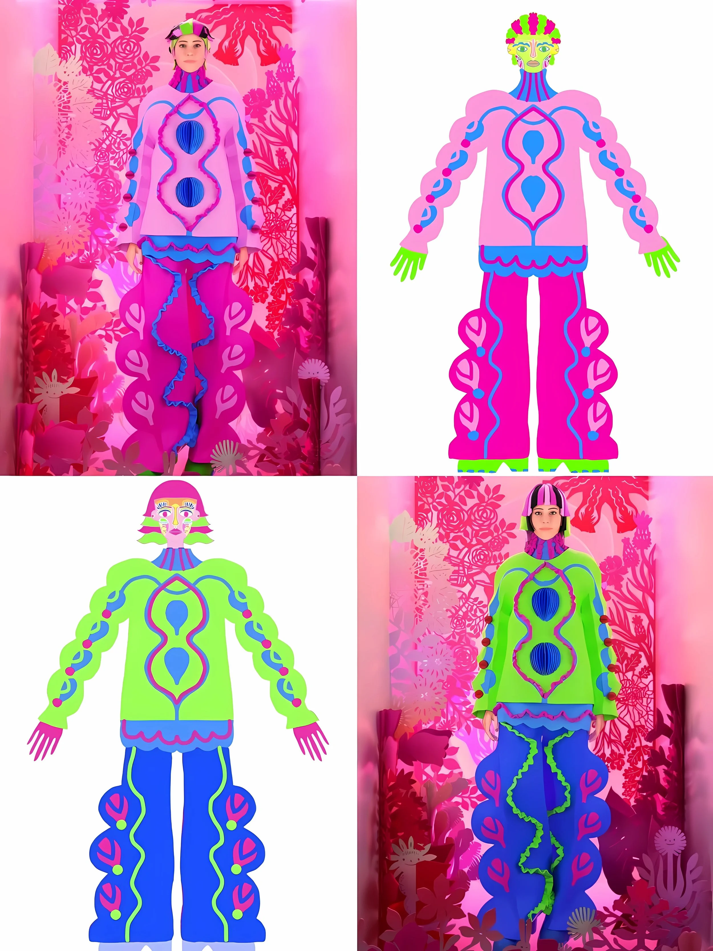 潮流时尚也拥有了全新的定义。每位来到 Paper Cutting 的访客可以根据自己的喜好DIY、设计以纸为材质的服饰,并通过AI试衣系统体验各种不同的造型。服装和配饰的设计灵感来源于大自然的风格和剪纸艺术的特性。粉丸巧妙地将可持续发展的概念融入时尚流行之中,让环保不再是一个遥远的口号,而是我们都会参与的生活方式。