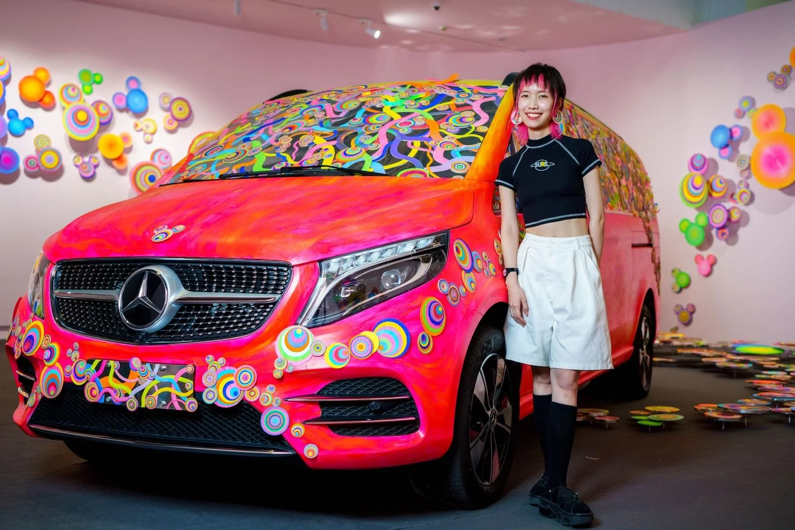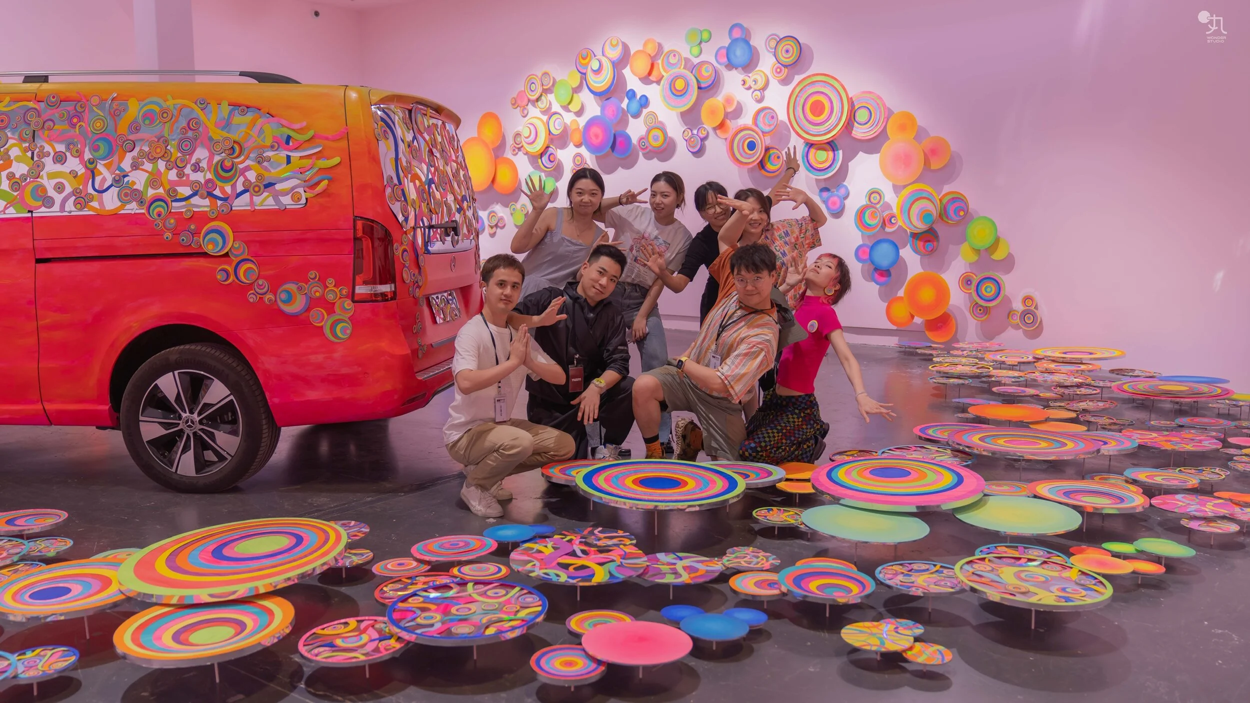 ⻋必须沿着道路开,想象力却不会走任何的路径。联合品牌梅赛德斯-奔驰,粉丸试图在展览空间中图解想象力,令满载着彩色米奇能量的奔驰mpv将其发散铺满四周,邀请观众开怀接收。
