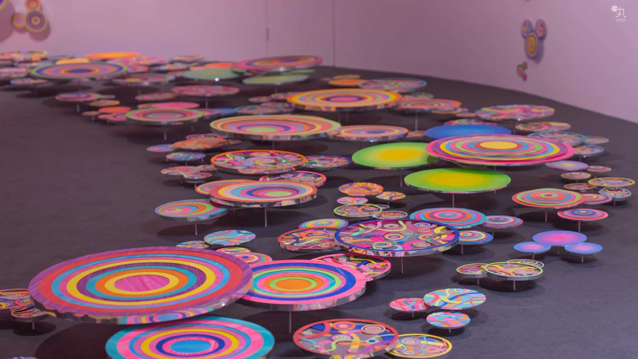 源源不断的米奇能量由错落的缤纷脉络碰撞产生,而步行至此空间的观众会发现——它们和展览中粉丸的另一件作品《米奇能量图》有所呼应!