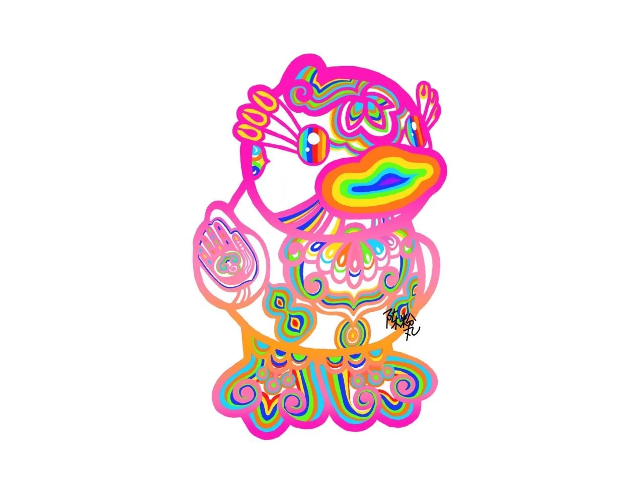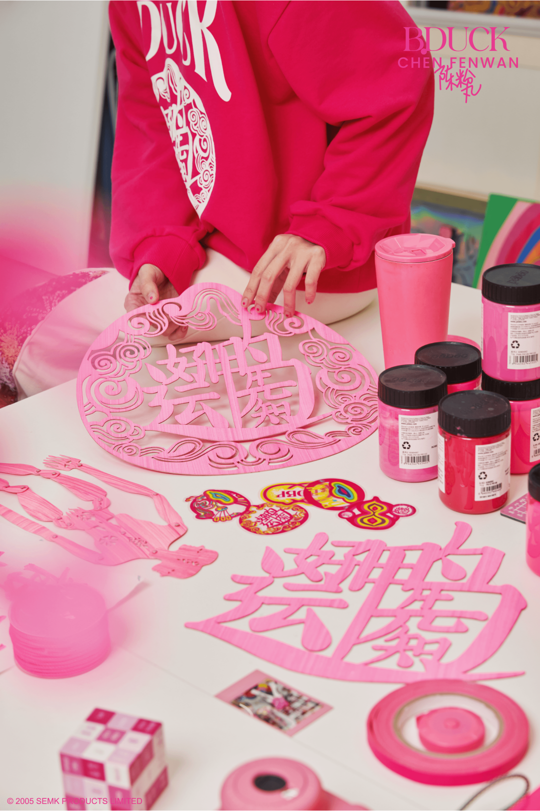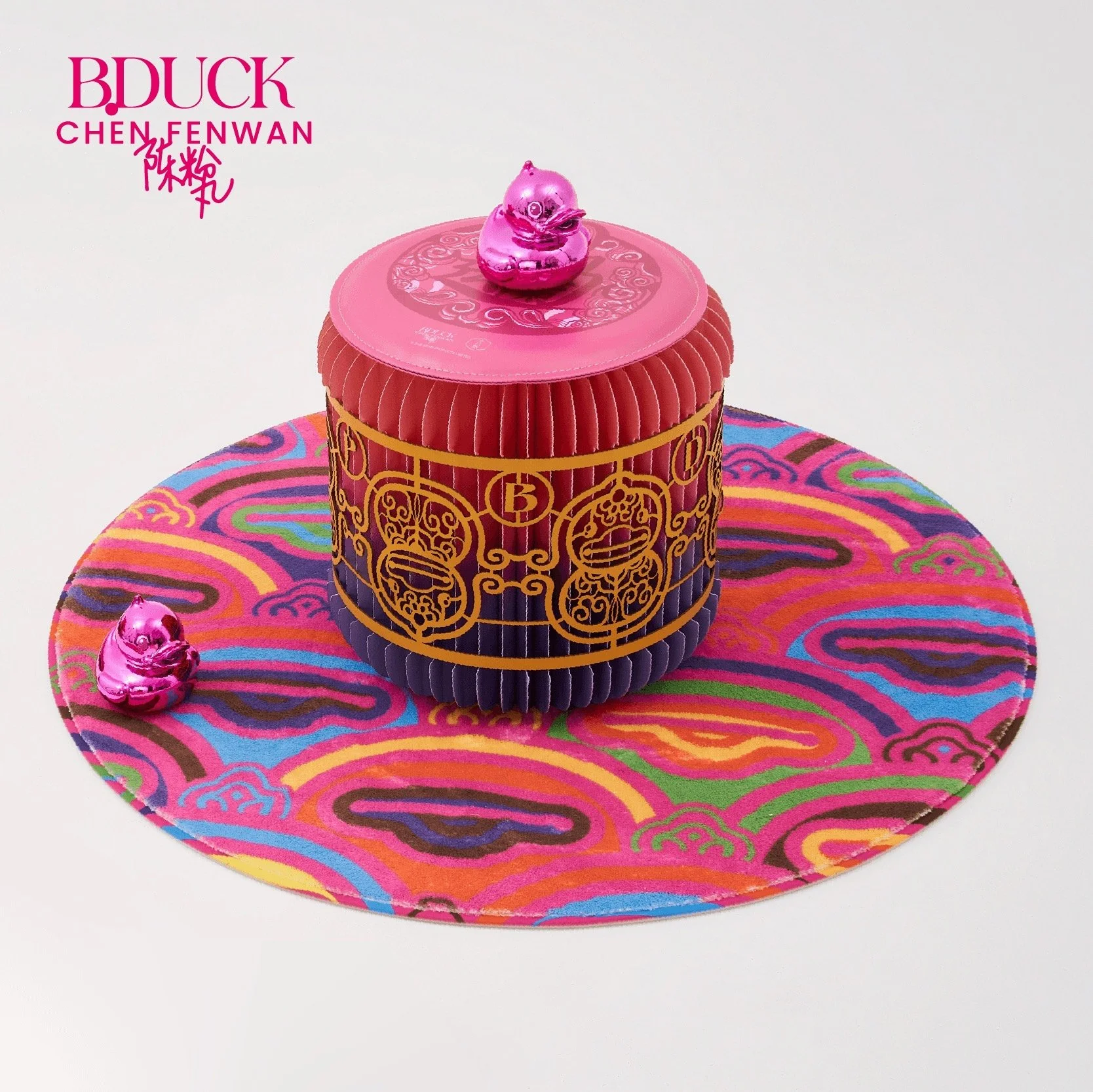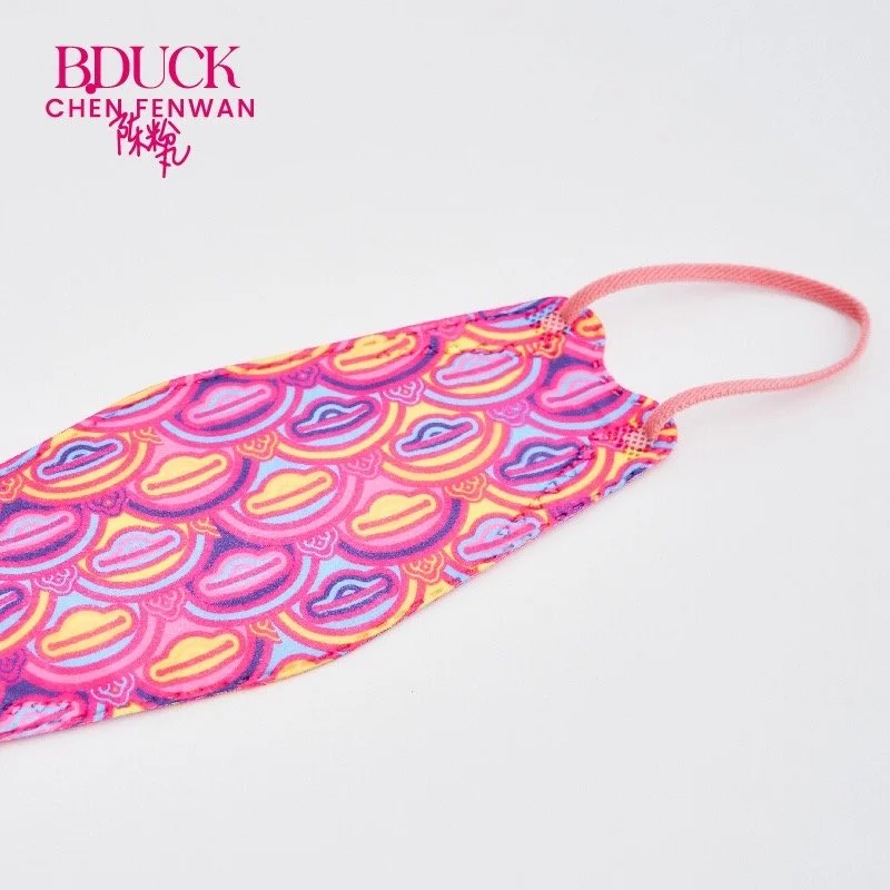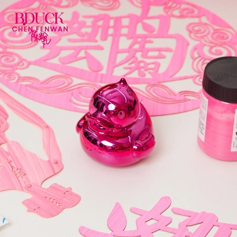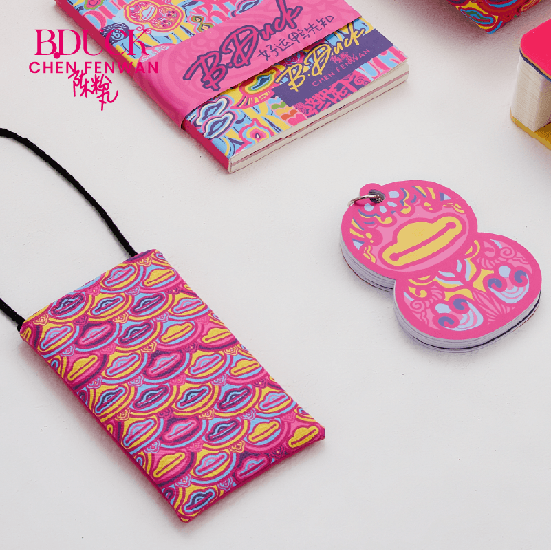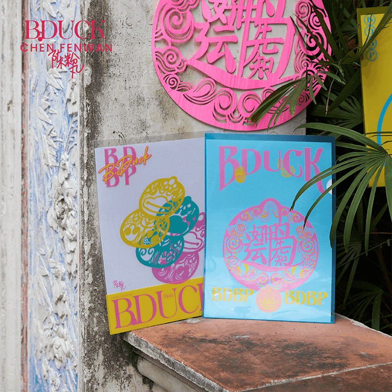 How to integrate the paper cutting "coat" while extracting the original characteristic of the duck is the most concerned subject of Fenwan. The B.duck's iconic pointed head, the light in its eyes and the head-body ratio have been retained, but what is special is that its new eyelashes are from the paper-cut shape of a dragon head's eyes in one of her representative works Infinite. And the wings are transformed into "hands", which has been used many times and means love to her. The duck body is wearing traditional Oriental patterns such as auspicious clouds and calabash, but the colors are more vivid and subversive.