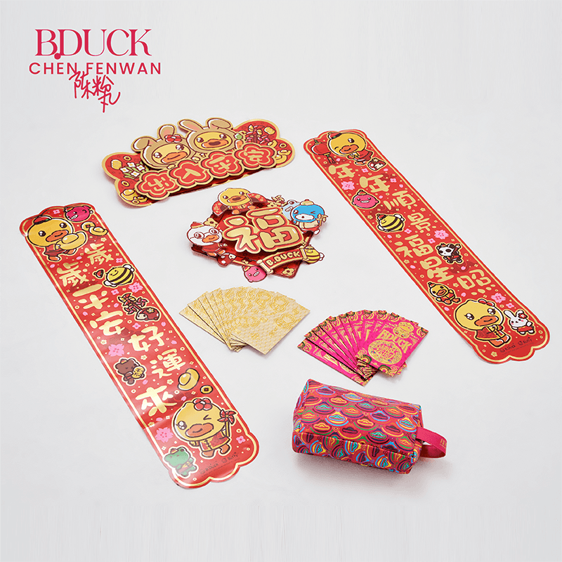 Fenwan was invited by the brand B.Duck, hoping to create a breakthrough new image for the little yellow duck. Coinciding with the Spring Festival, the title was named The Duck Knows First When Luck Come. She specially formed it into a combined word with the other visual elements and derivative products.