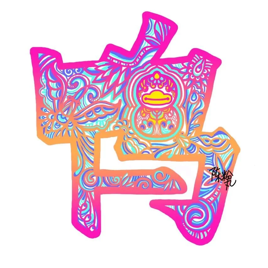 In the observation of many Chinese traditional patterns and materials, Fenwan had a strong interest in compound character. It is one of the creation norms to combine multiple characters into a single one without changing the original meaning. People often place good luck on it. At the same time, the compound character The Duck Knows First When Luck Come is from the famous Chinese verse "the duck knows first when the river becomes warm in spring ", fiting the Spring Festival. Thus, the two smoothly combined, connected in the lovely small tip duck head! The character as a kind of paper cutting graphic has become an important part of the theme story.