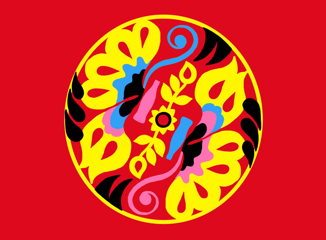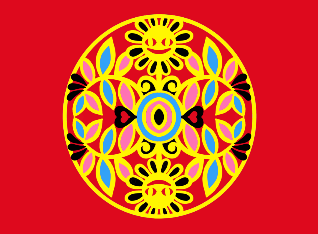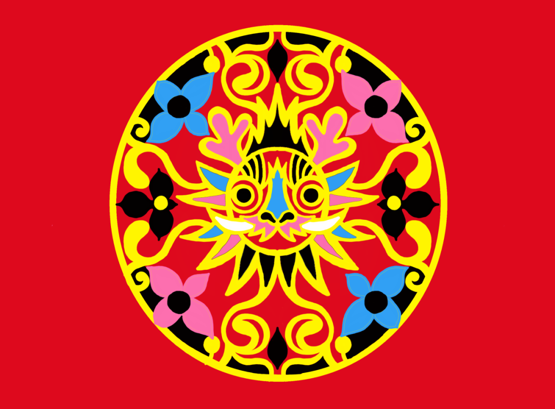 且受传统⻰形⻛筝「分节成串」启发,她在创作中将⻰的循环单元具象化为一个个圆形团纹。由此,⻰鳞也就有了更为丰富的表达形式:圆圆不绝,盘⻰无限。