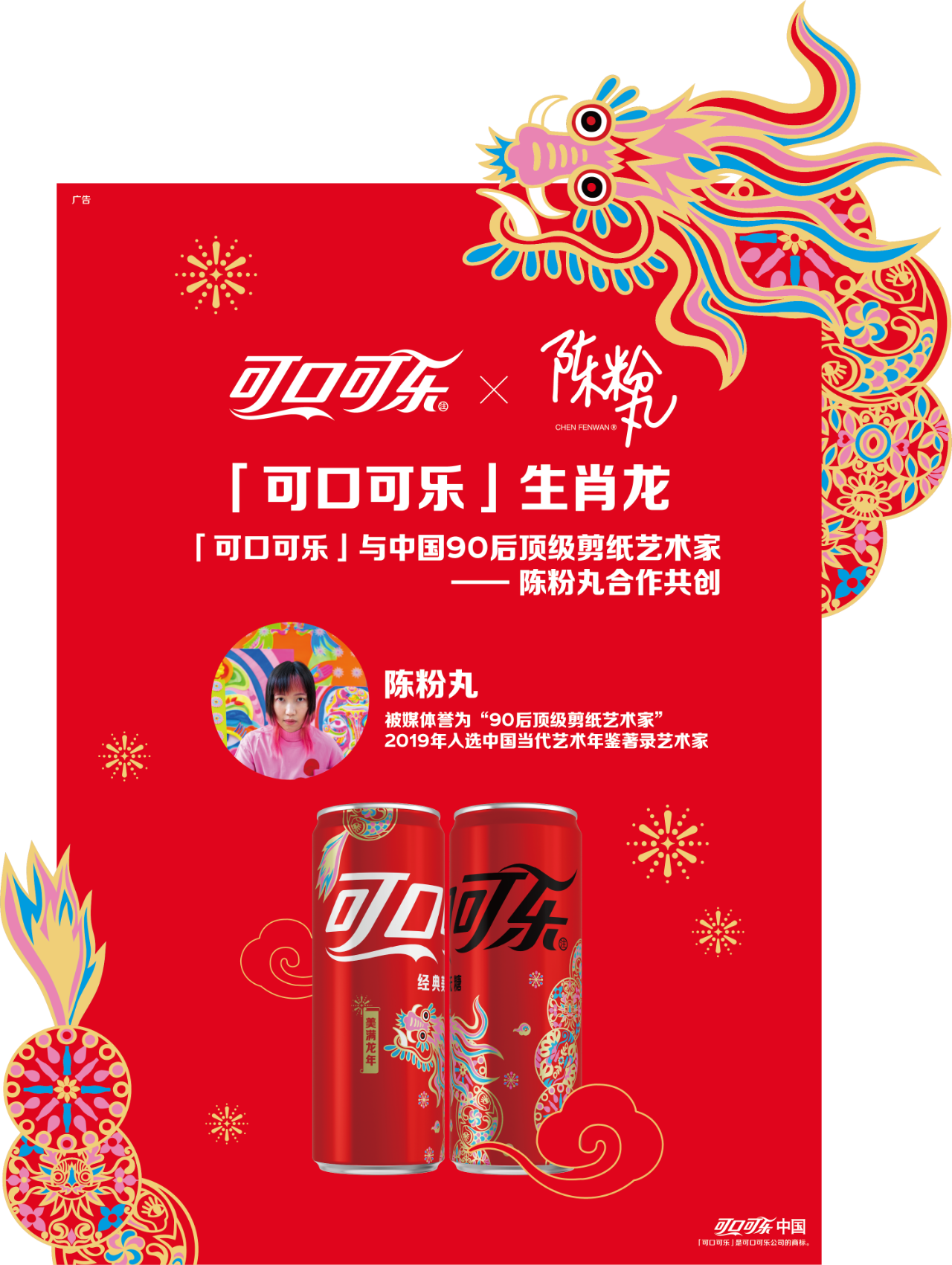 十二纪一轮转,2024新春即为中国龙年,与品牌可口可乐携手合拍,以独一无二版本的龙之形象为引,粉丸在可乐罐身上将想象力的龙鳞聚合为共同的团圆之祝愿。