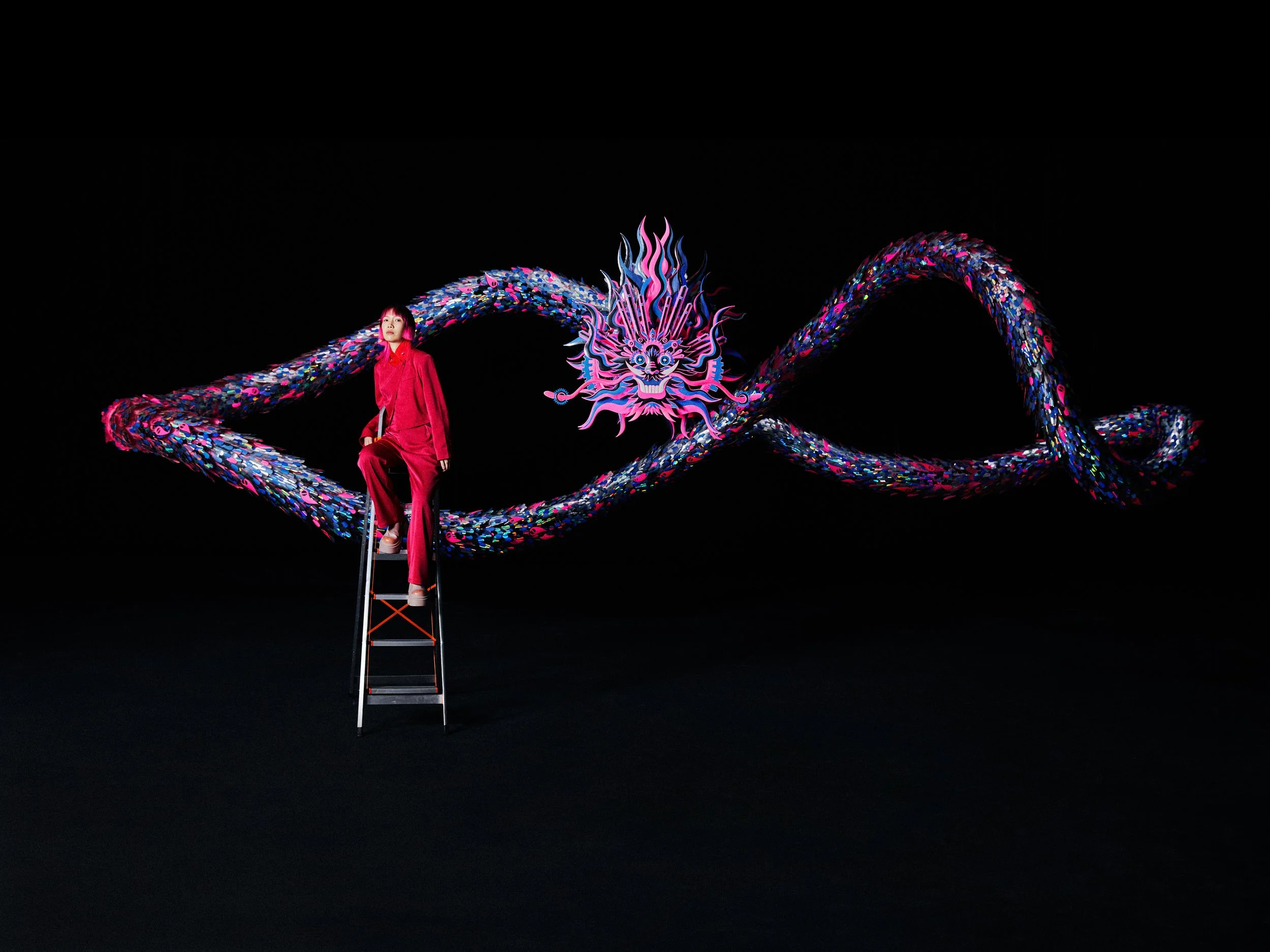 With the Chinese New Year of the Dragon approaching, Chen Fenwan tapped the Swiss luxury brand Hublot, co-creating the limited edition of the timepiece The Spirit of Big Bang Titanium Dragon. It is inspired by her work Infinite, an ongoing paper art installation shaped like a giant dragon.