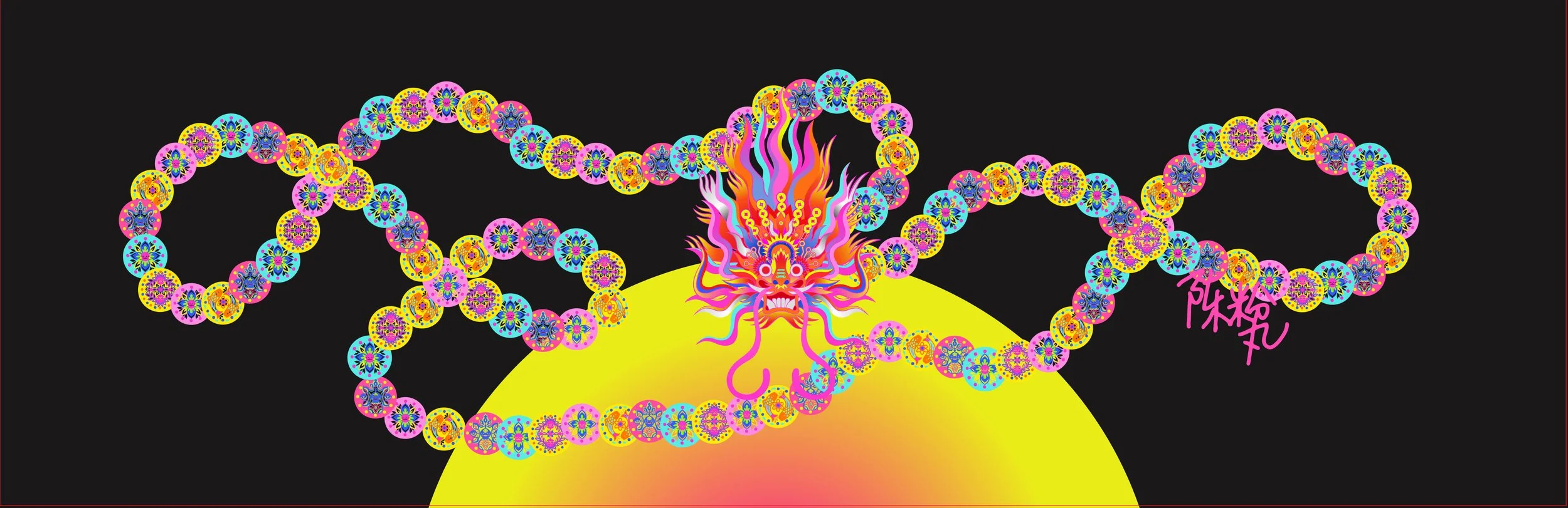 繁复的团纹图案与零食元素相互交织,以充满想象力的叙事,勾勒出艺术与零食碰撞的奇妙世界,带领观众沉浸式感受本次跨界合作的独特魅力。