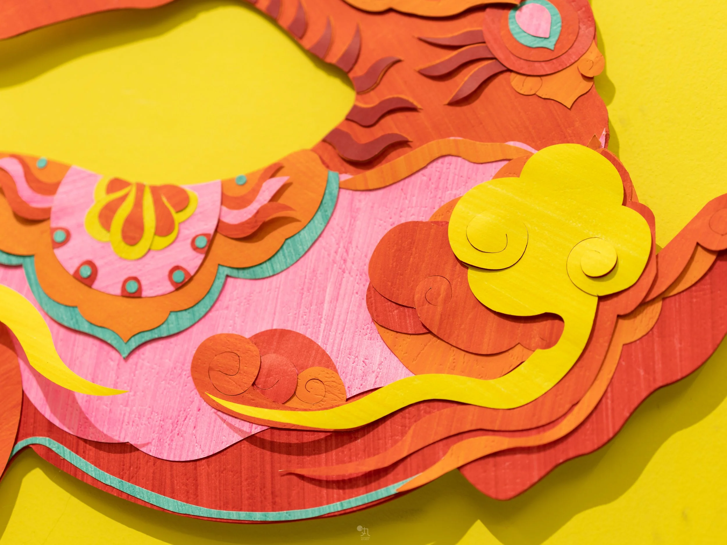 Not Ma-hu are composed of a large number of paper-cut fragments, the complicated layers need to be arranged carefully and rigorously. The paper is processed by hand coloring, engraving, rolling and other actions, almost getting out of the plane, and becomes a relief work with thickness. The light is on the edge of the sharp pattern, simulating half shadow.