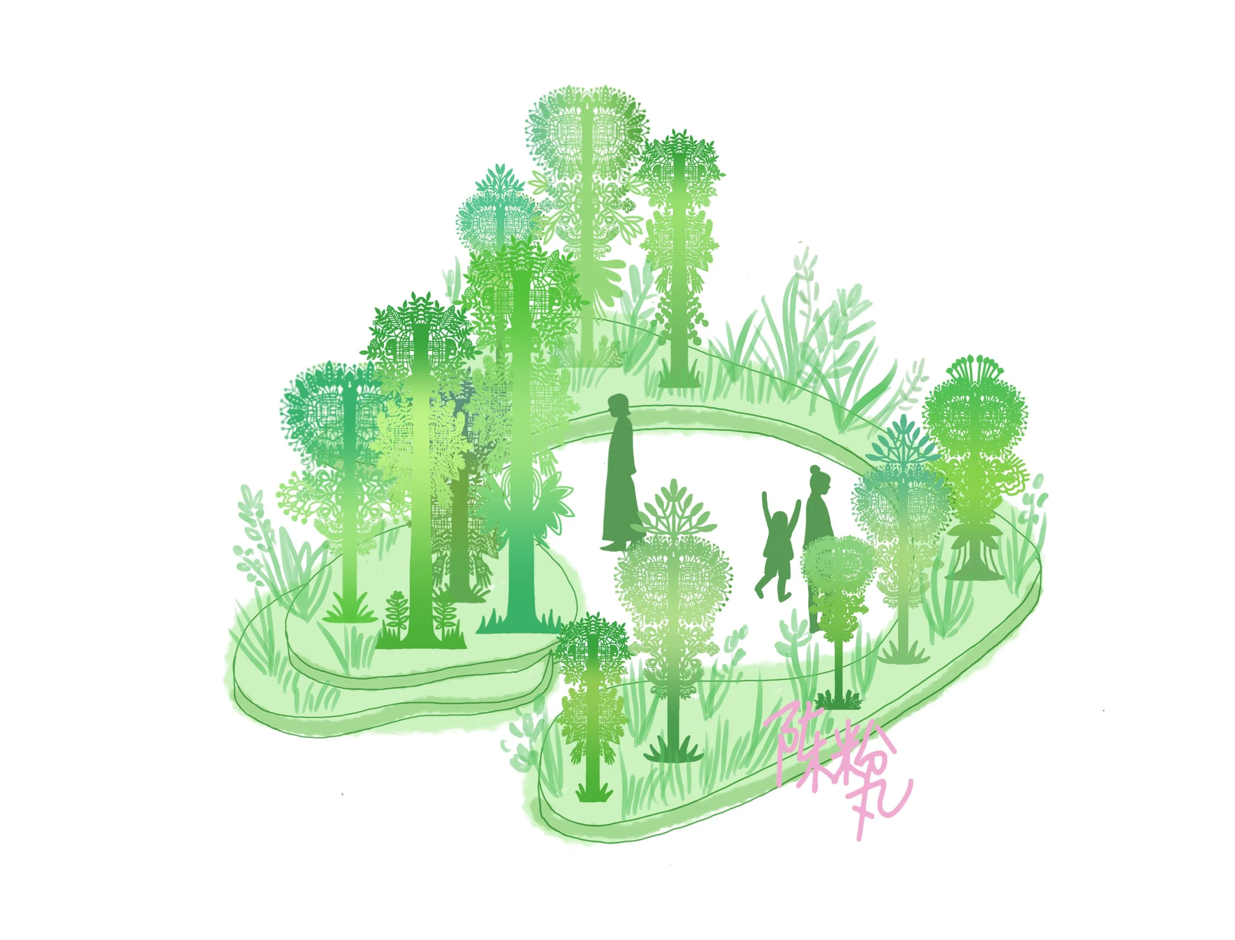 城市脉络与地方性植物兼融,从中绽开花朵满枝,期待向困境新生的城市生活张开怀抱。同时略施粉黛异色,成为想象力与现实对称的绿洲。