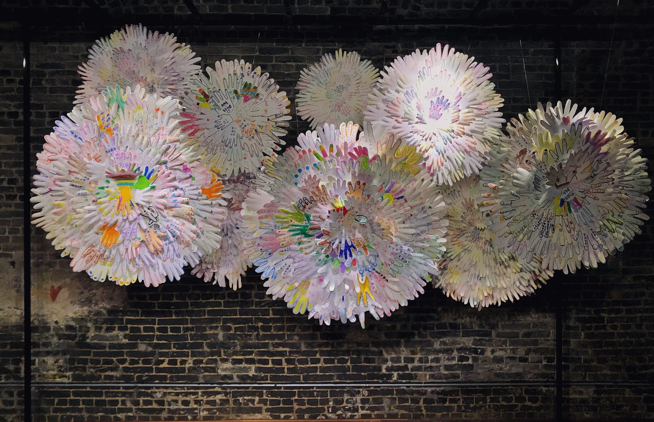 随后,在翌年手语铺落成的蒲公英们,又借由更多人的参与延续着更强的生命力,脱胎成为新的作品 ——《播种烟花》。无数大大小小的纯真的手掌,承载四方的愿望语言,散落成缤纷的蒲公英,随风相遇。